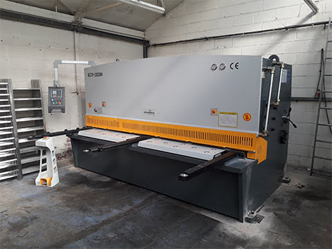 HSB3206 3.2m Hydraulic Guillotine, with a shear capacity of 12mm, installed in a steel fabrication factory in Walthamstow, London.