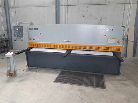 HSB3026 3m Premium Hydraulic Guillotine, up to 6mm cut capacity, installed in a steel fabrication factory in Kilmarnock, Scotland.