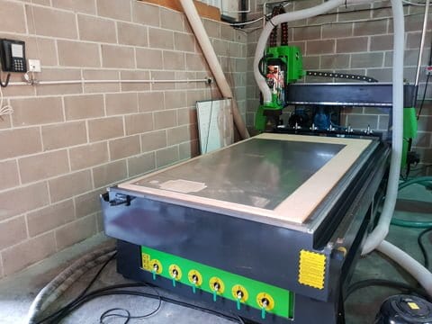 Router with vacuum table and dust extraction installed in a factory in Bristol manufacturing solar equipment for the highways.